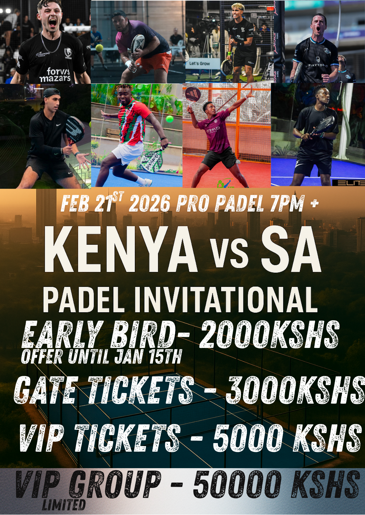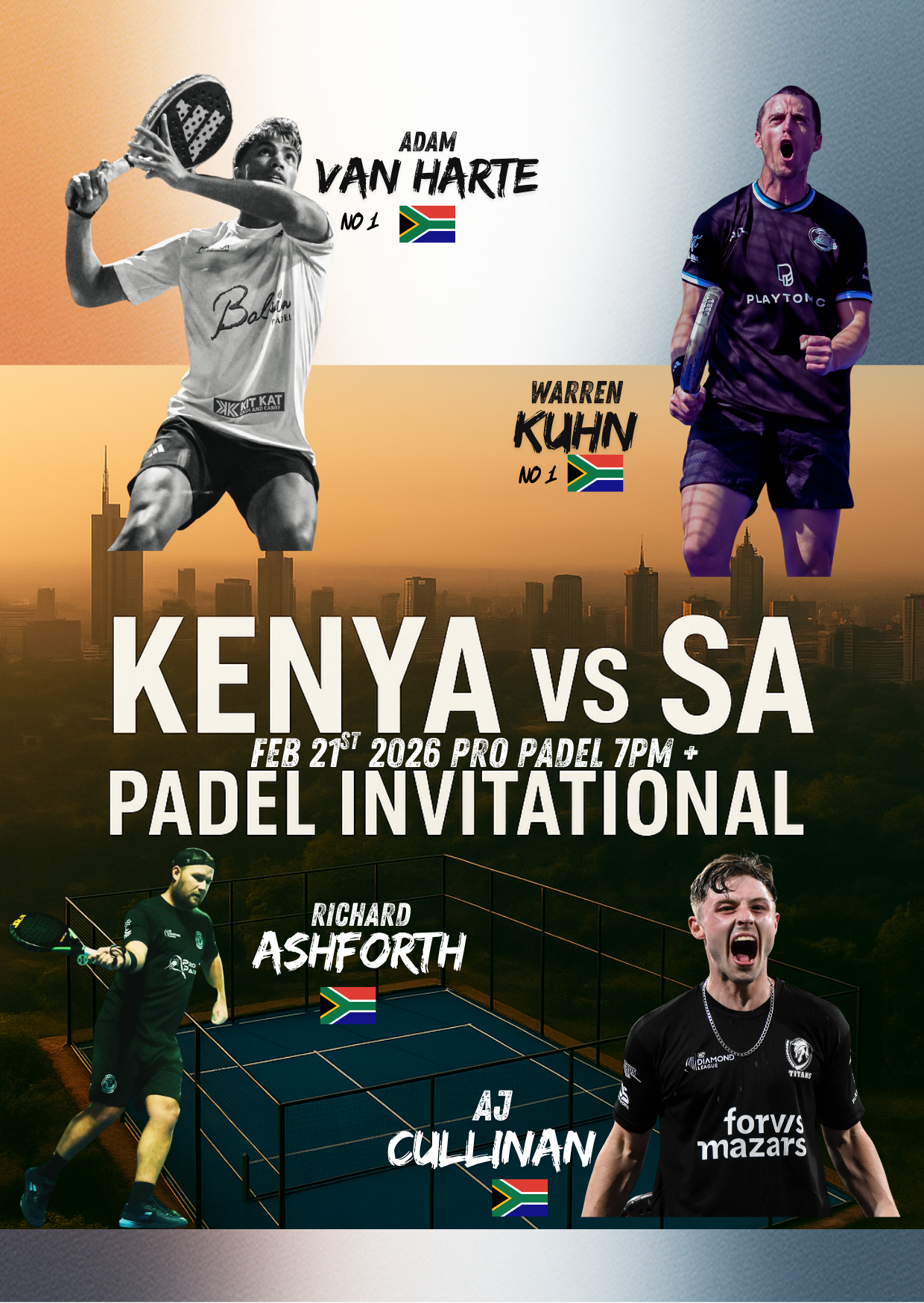 Kenya Vs South Africa , The International Padel Clash not to be missed. FEBRUARY 21st 2026 7pm Onwards followed by Massive After Party